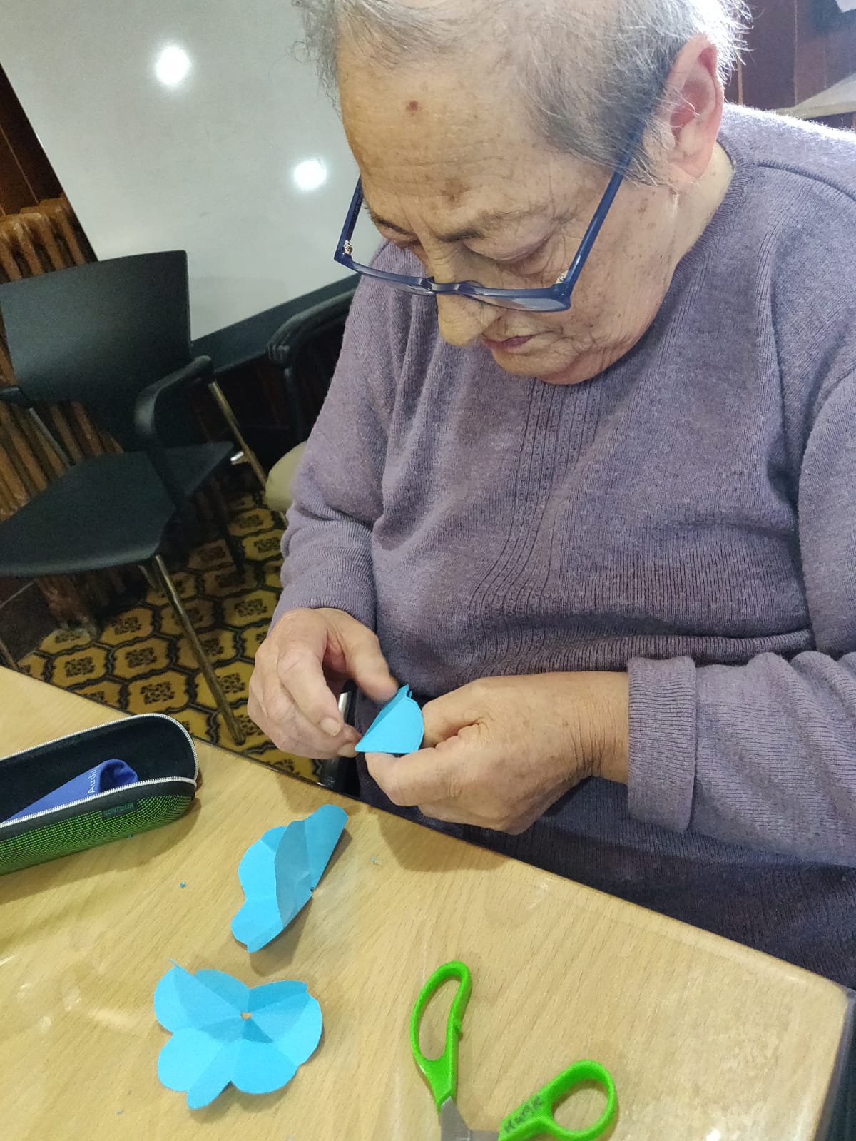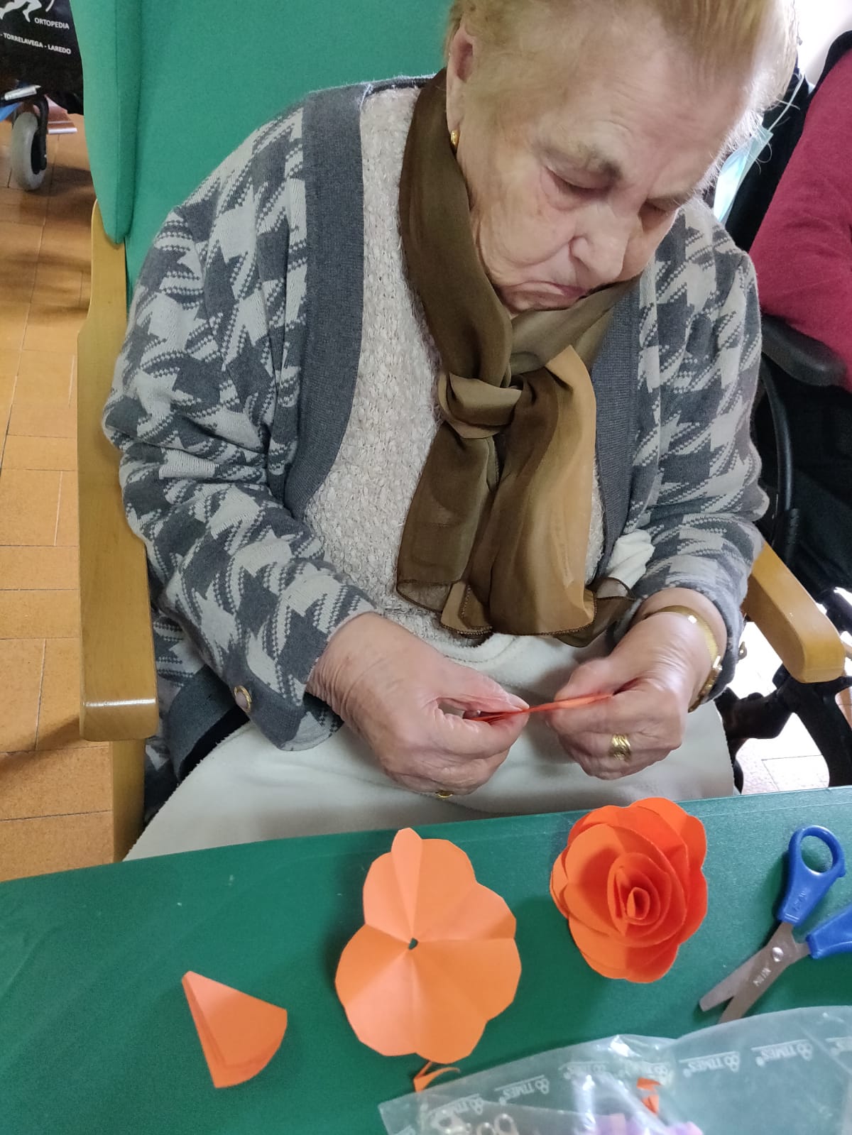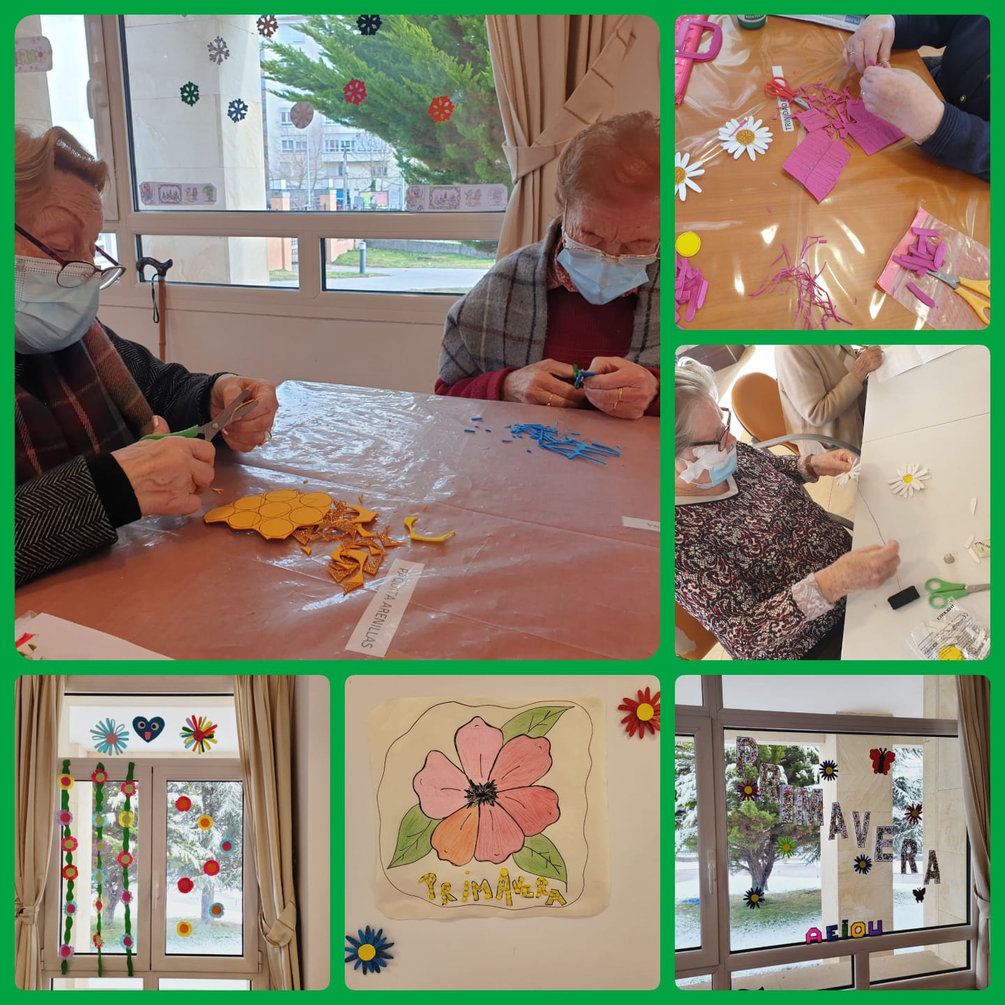 Pero además de esto, la primavera ha entrado fuerte porque también han estado elaborando en sus terapias diarias distintas flores y cestas de papel para decorar las salas y la exposición de fotos.